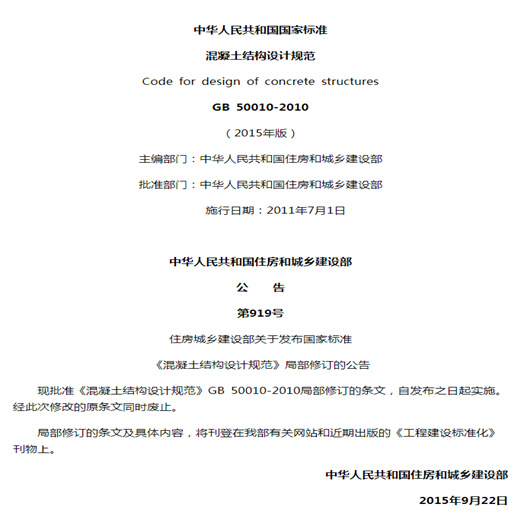 本規(guī)范由住房和城鄉(xiāng)建設(shè)部負(fù)責(zé)管理和對(duì)強(qiáng)制性條文的解釋,由中國(guó)建筑科學(xué)研究院負(fù)責(zé)具體技術(shù)內(nèi)容的解釋。執(zhí)行本規(guī)范過(guò)程中如有意見或建議,請(qǐng)寄送中國(guó)建筑科學(xué)研究院國(guó)家標(biāo)準(zhǔn)《混凝土結(jié)構(gòu)設(shè)計(jì)規(guī)范》管理組(地址:北京市北三環(huán)東路30號(hào),郵編:100013)。